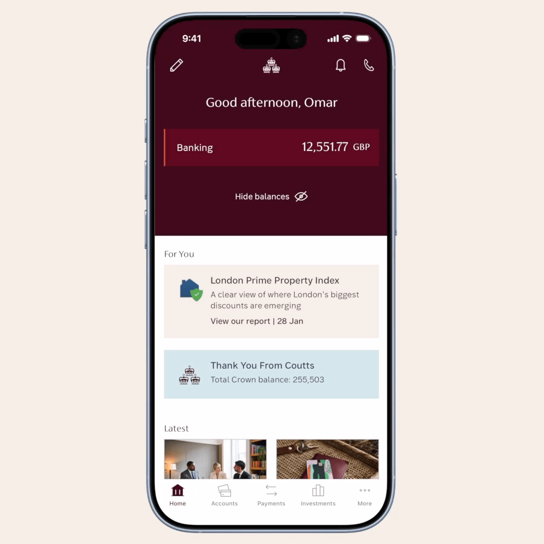 You must be a Coutts client to access the Coutts app and need a compatible iOS or Android device. You'll also need a valid email address and mobile phone number to activate the service.